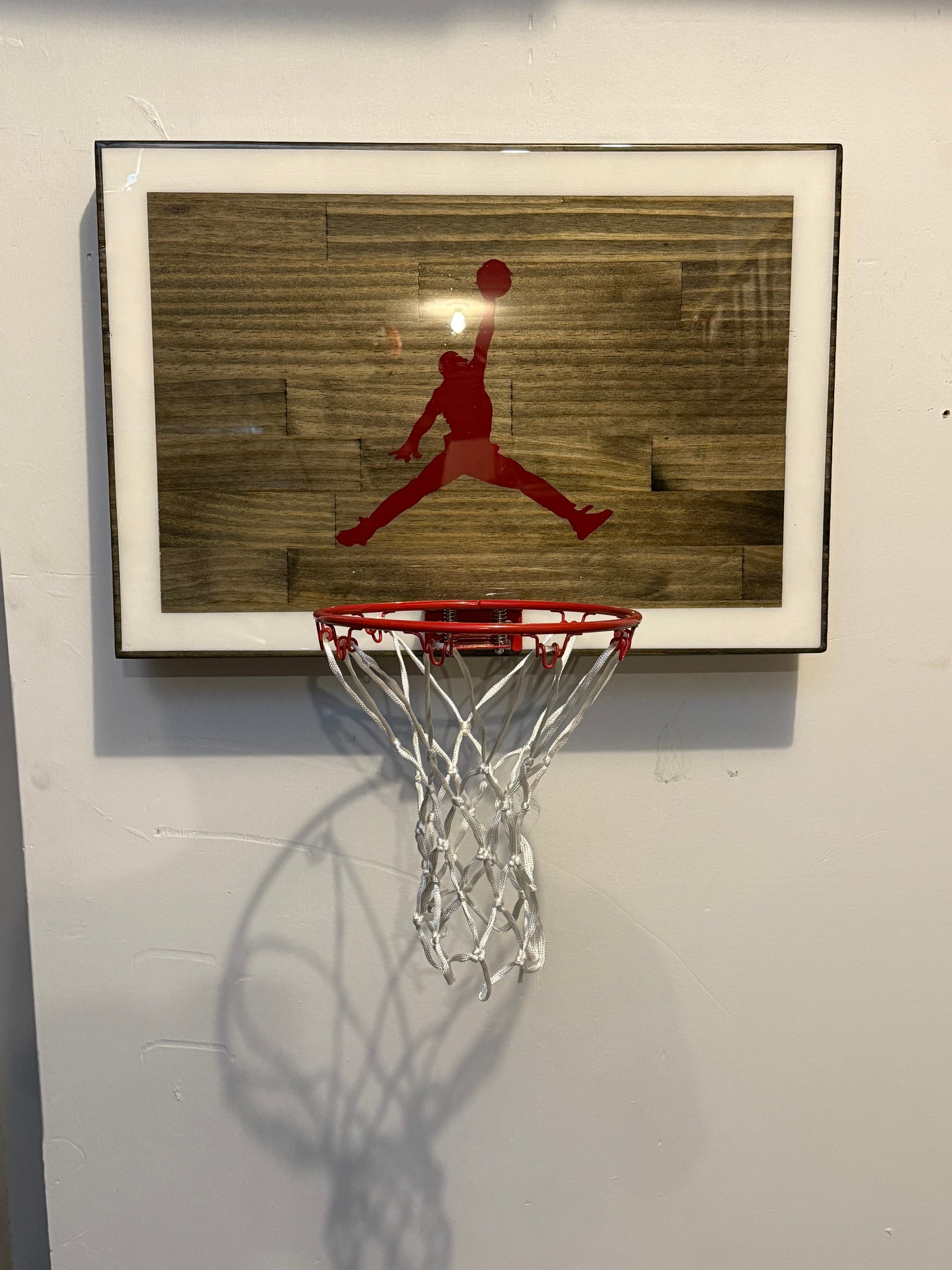 - Hand-built backboard – Solid wood, cut and sanded smooth, typically around 23”x 16" or 16” x 12”(can be adjusted on request).